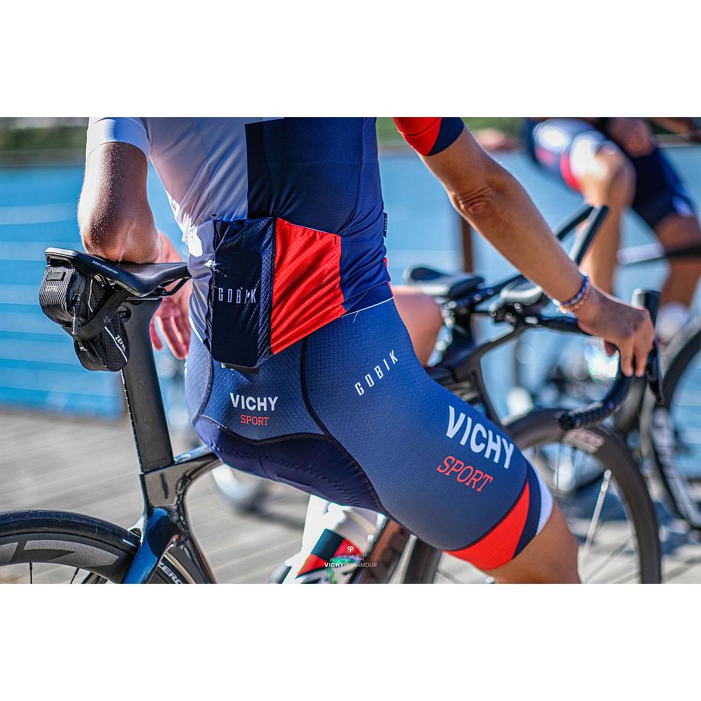 Ce cuissard haut de gamme signé GOBIK arbore le design exclusif Vichy Sport, inspiré de l’héritage sportif de la ville. Pensé pour les cyclistes exigeants, il assure maintien, confort et respirabilité même sur les longues distances.